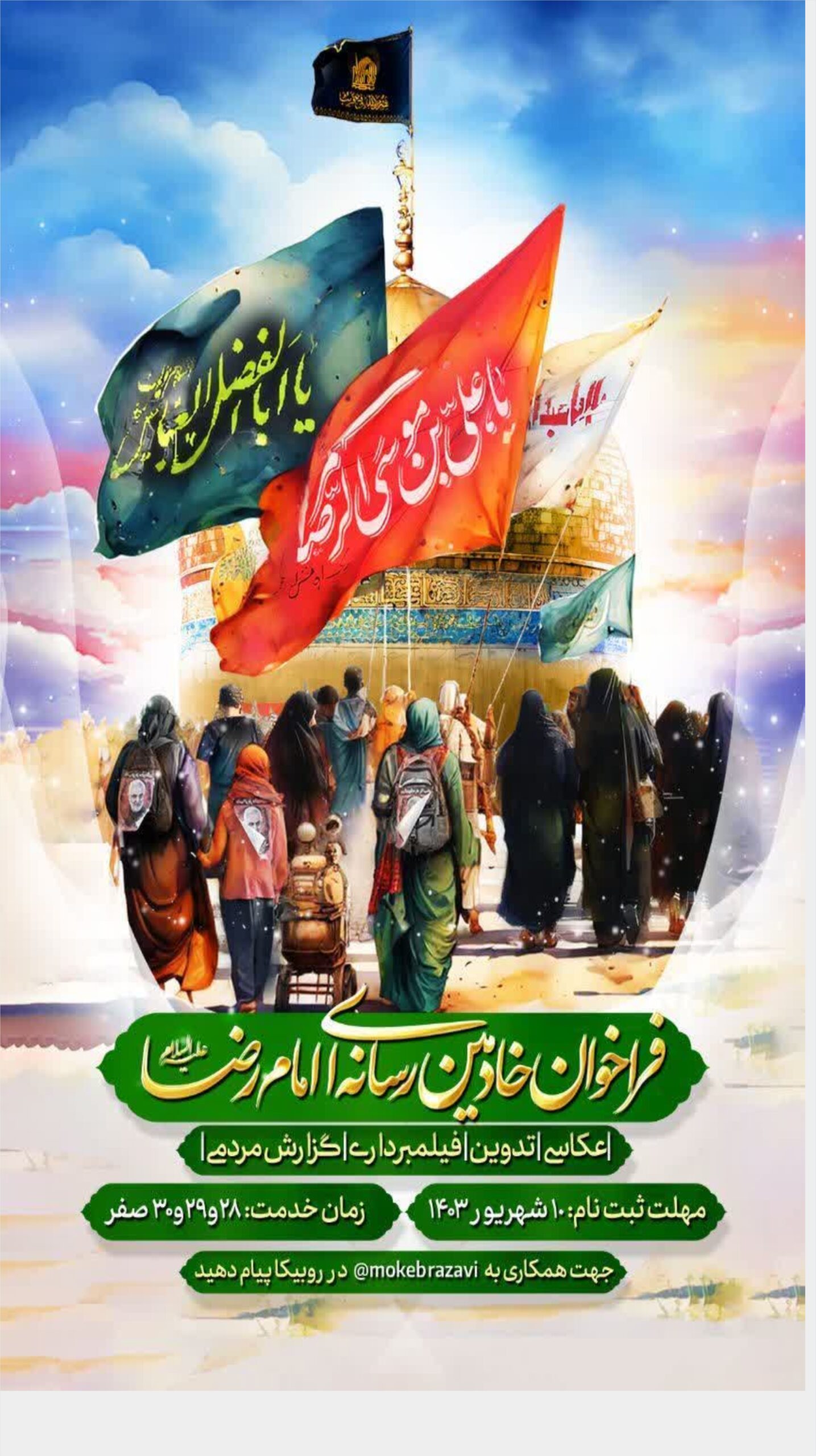 پویش ها فراخوان خادمین رسانه ای امام رضا (ع) 1403-11-02 ارسال شده توسط جهاد سازندگی خراسان رضوی ۰۲ بهمن