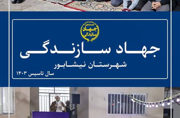 جهادسازندگی با همّت گروه های مردمی و جهادی در جهت خدمت رسانی به مناطق محروم، سند پیشرفت روستایی، حمایت از تولید و اشتغال خرد و…. در نیشابور فعالیت میکند.